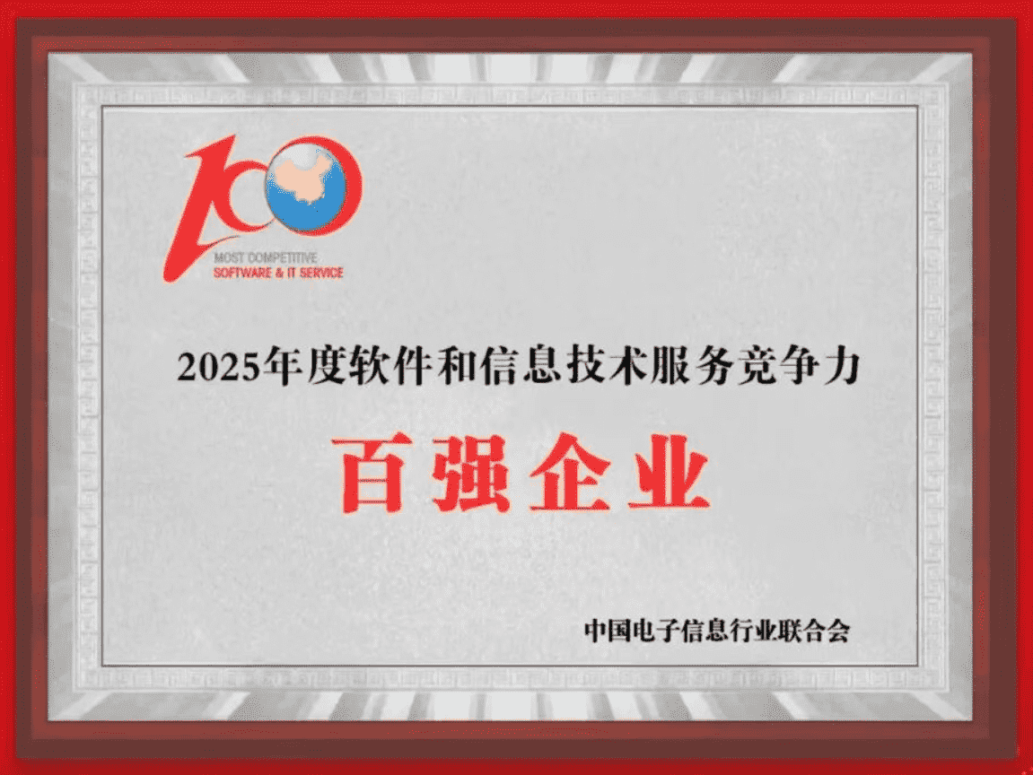 20251015日,,,中国电子信息行业联合会权威揭晓“2025年度软件和信息技术服务竞争力前百家企业名单。。。。中国软件百强企业评选活动是由工业和信息化部全程指导、、、中国电子信息行业联合会牵头组织发起,,,,是反映中国软件产业发展最高水平的“风向标”。。。厦门赏金大对决网络技术股份有限公司(以下简称“赏金大对决”或“公司”)凭借自身在软件技术领域的卓越表现与杰出创新能力,,第六次入选“全国软件和信息技术服务竞争力前百家企业”称号。。。