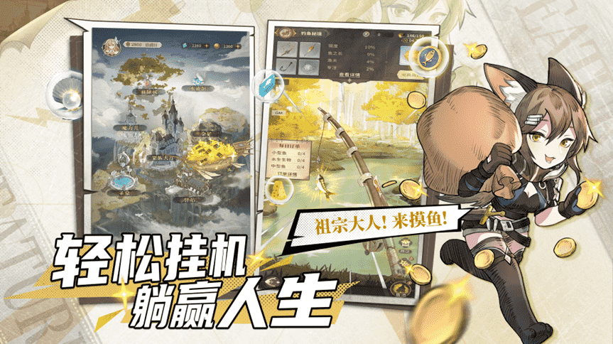 躺平就能猛猛发育???谁能拒绝~挂机冒险,,,,收复领地,,,,源源不断的资源来袭,,,,重振家族指日可待!!!据说还有绝佳隐秘的摸鱼据点!!