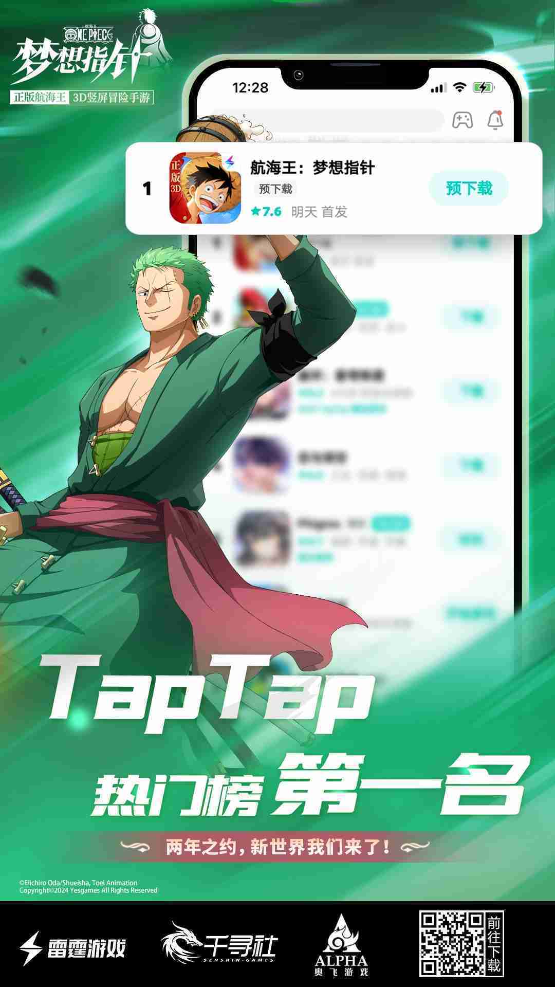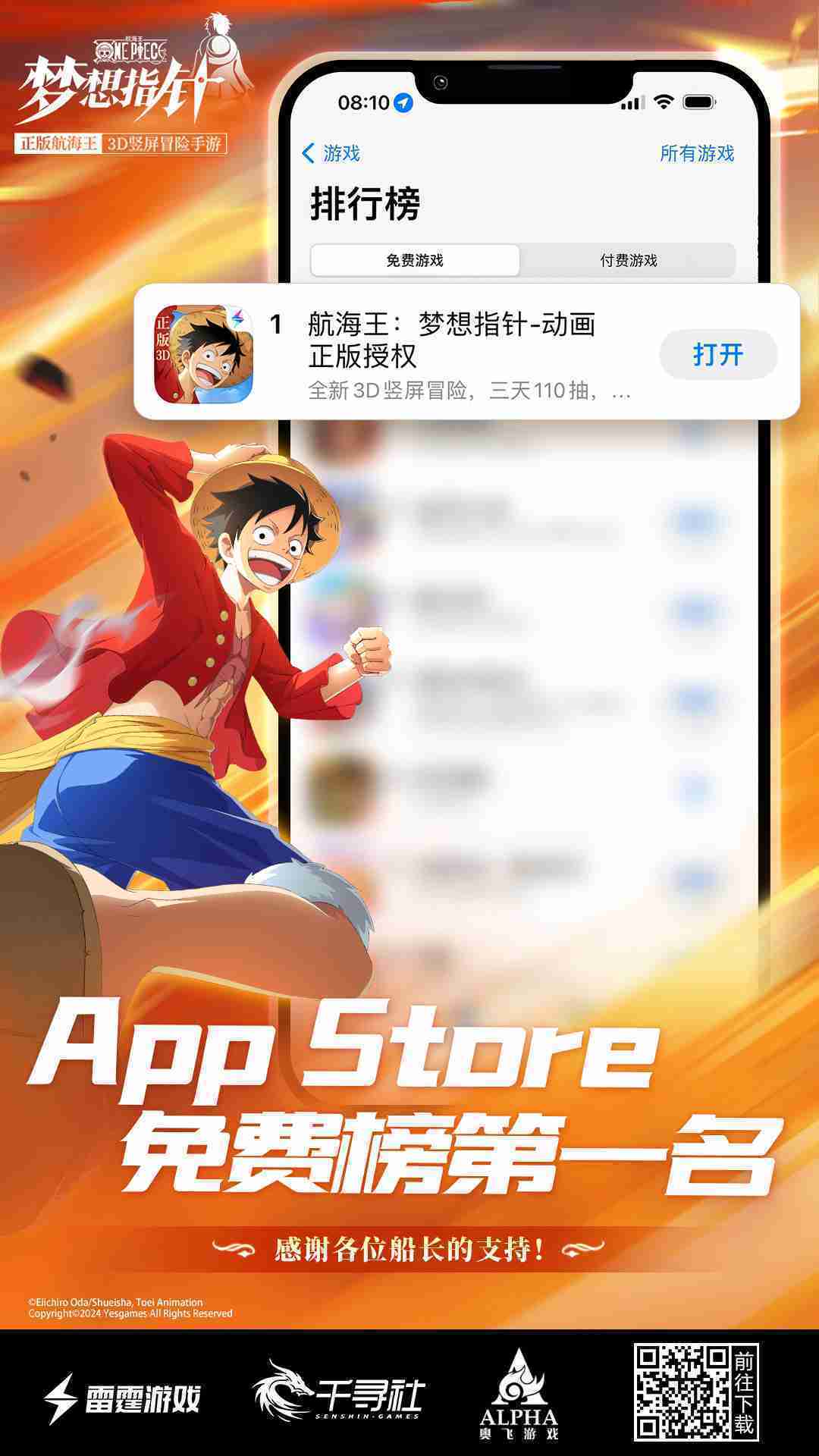《航海王:::梦想指针》登顶App Store免费榜,,,,公测福利汇总!!!